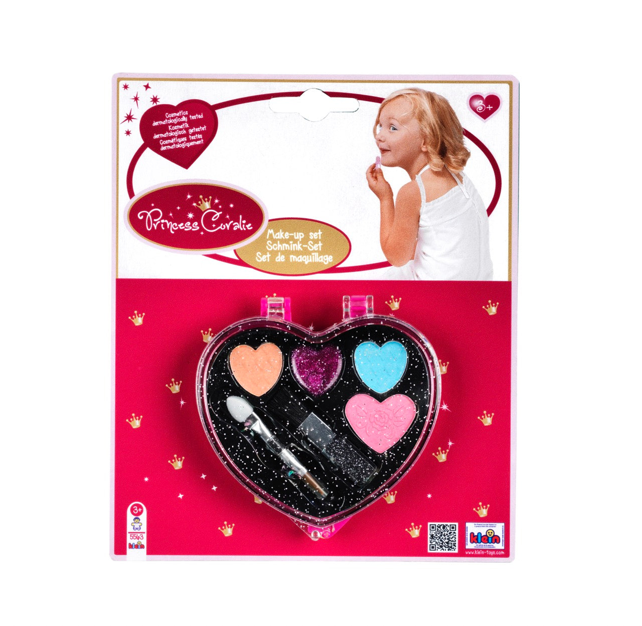 Srdce každého dítěte, které miluje barevné a rozmanité věci, bije rychleji: Dětská kosmetická sada s roztomilým srdíčkem na líčení obsahuje základní potřeby pro malování sebe, svého nejlepšího kamaráda nebo nejlepšího kamaráda v zářivých barvách. Je tu spousta líčení, které je krásné a užitečné pro děti, na zábavnou dětskou párty nebo dokonce na karneval. Barevné oční stíny se nanášejí rychle a snadno pomocí aplikátoru, tvářenku pak jemným štětečkem na dětskou tvářenku. Zábava s make-upem je zcela neškodná: Dětský make-up v elegantní srdíčkové krabičce je dermatologicky testován a kromě toho, že poskytuje těm nejmenším spoustu zábavy při nanášení make-upu a proměně jejich vzhledu, dává malým fanouškům krásy také mnoho procvičení motoriky a koordinace oko-ruka.