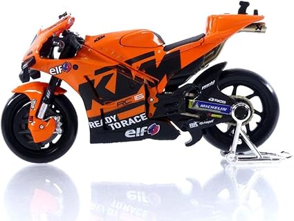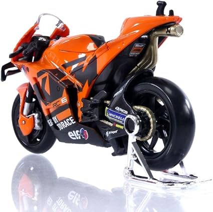 Model motocyklu v měřítku 1/18 představující Moto GP 2021 Tech3 KTM Factory. Tento pečlivě zpracovaný model motocyklu obsahuje všechny klíčové detaily, které odrážejí skutečný závodní motocykl, jako jsou loga, barvy a design typický pro tento tým. Je vyroben z vysoce kvalitního tlakově litého kovu s precizními detaily a barevnými úpravami, které ilustrují skutečný motocykl.