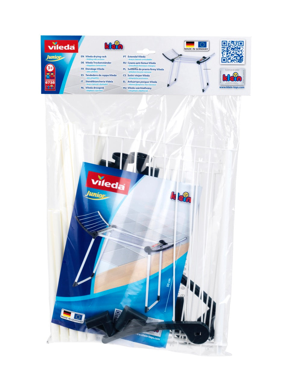 Když je medvídek mokrý nebo oblečení panenky právě vyprané, malé maminky a tatínkové je mohou jednoduše pověsit, aby uschli. Cítí se jako dospělí, protože sušička je postavena ve známém designu Vileda. Může to být verze pro panenky, ale stále na ni můžete pověsit velké ponožky a trička, aby děti mohly pomáhat svým rodičům v domácnosti, zatímco si hrají. Tyto pilovací hry jsou pro děti zvláště důležité, a to i proto, že je využívají k procvičování své obratnosti a motoriky.