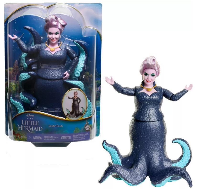 - Panenka Ursula je pohyblivá a prezentovaná v autentickém vzhledu s chapadly, odnímatelným náhrdelníkem a třpytivými detaily!