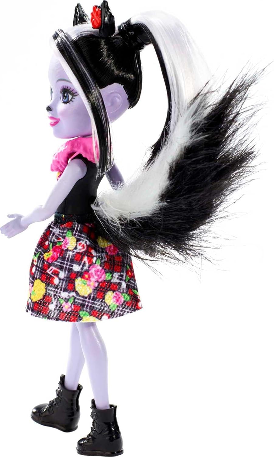 Nechte se okouzlit rozkošnými panenkami Enchantimals™ a jejich zvířecími kamarády. Sage Skunk™ a její věrný přítel Caper™, fretka, spojuje zvláštní pouto – jsou vždy spolu a vypadají hodně podobně! Sage Skunk™, obyvatel rockového světa, nosí odvážný outfit s květinovými a kostkovanými vzory, bojové boty a růžový sochařský kabát. Děti si zamilují její rozkošné detaily, které ladí s jejím zvířecím kamarádem, jako je pruhovaný ocas a uši fretky. Fretka Caper™ má také rozkošné doplňky, včetně chlupatého ocasu a rozkošného výrazu obličeje. Děti si s nimi užijí hraní a vytváření vlastních dobrodružství Enchantimals™! Sbírejte je všechny a vytvořte si svůj vlastní kouzelný svět Enchantimals™ (každá hračka se prodává samostatně, podle dostupnosti). Sada obsahuje panenku s módními doplňky a figurku zvířátka. Barvy a dekorace se mohou lišit.
