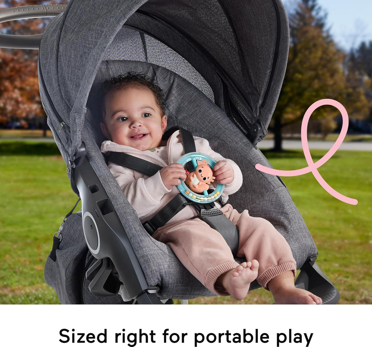 Tento zábavný Shake & Spin Axolotl™ od Fisher-Price® přinese vašemu dítěti spoustu radosti. Snadno uchopitelný kroužek této smyslové hračky obsahuje kuličky, které se točí a chrastí, stimulují sluch dítěte a pomáhají učit se vztahy příčiny a následku, když dítě hračku uchopí a zatřese s ní. Navíc tento rozkošný axolotl pomůže posílit jemné motorické dovednosti během hry.