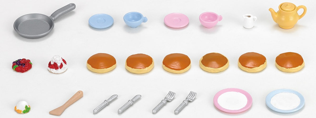 Všichni v Sylvánii si vychutnají vaše vynikající domácí palačinky s výběrem lahodných polev! Není lepší způsob, jak si je užít, než na zahradě s krásnou konvicí čaje! Obsahuje: 6 palačinek, 3 polevy, pánev, 2 páry čajových šálků, konvičku a příslušenství. Figurky nejsou součástí dodávky. Vhodné pro děti od 3 let.