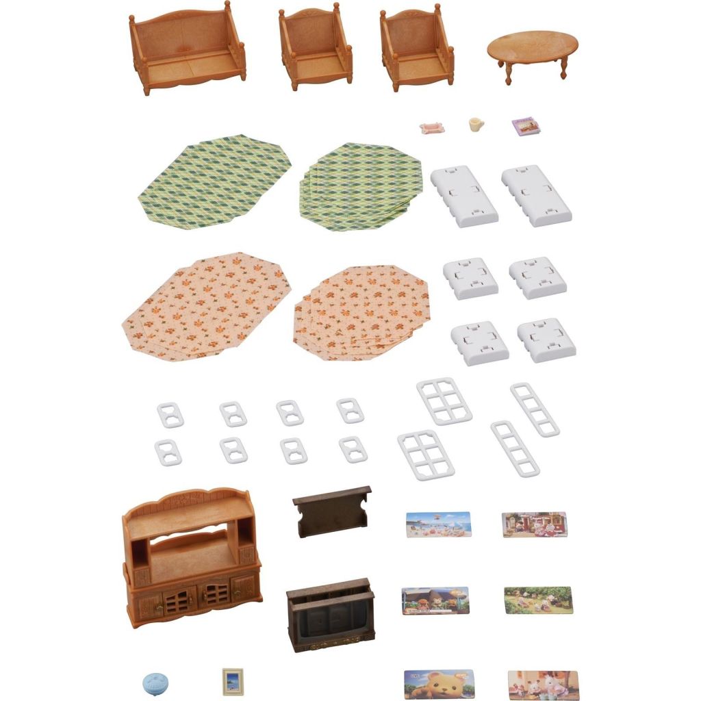 Tato stylová obývací sestava z kolekce Sylvanian Families bude skvělým doplňkem jejich sbírky. Útulný set obsahuje dvě pohodlná křesla, pohovku, konferenční stolek a TV skříňku a další doplňky. Část kolekce Sylvanian Families - nábytek a doplňky.