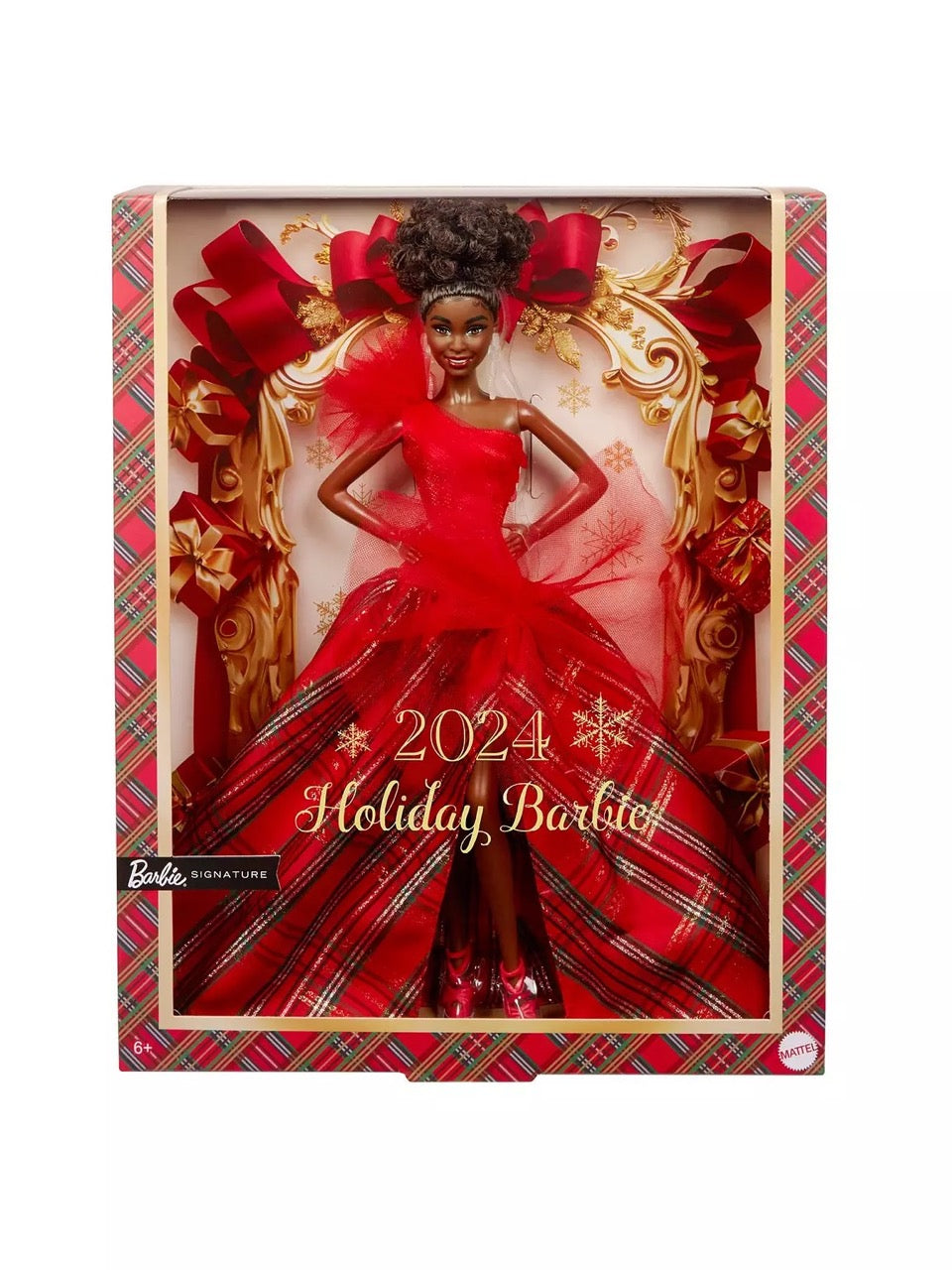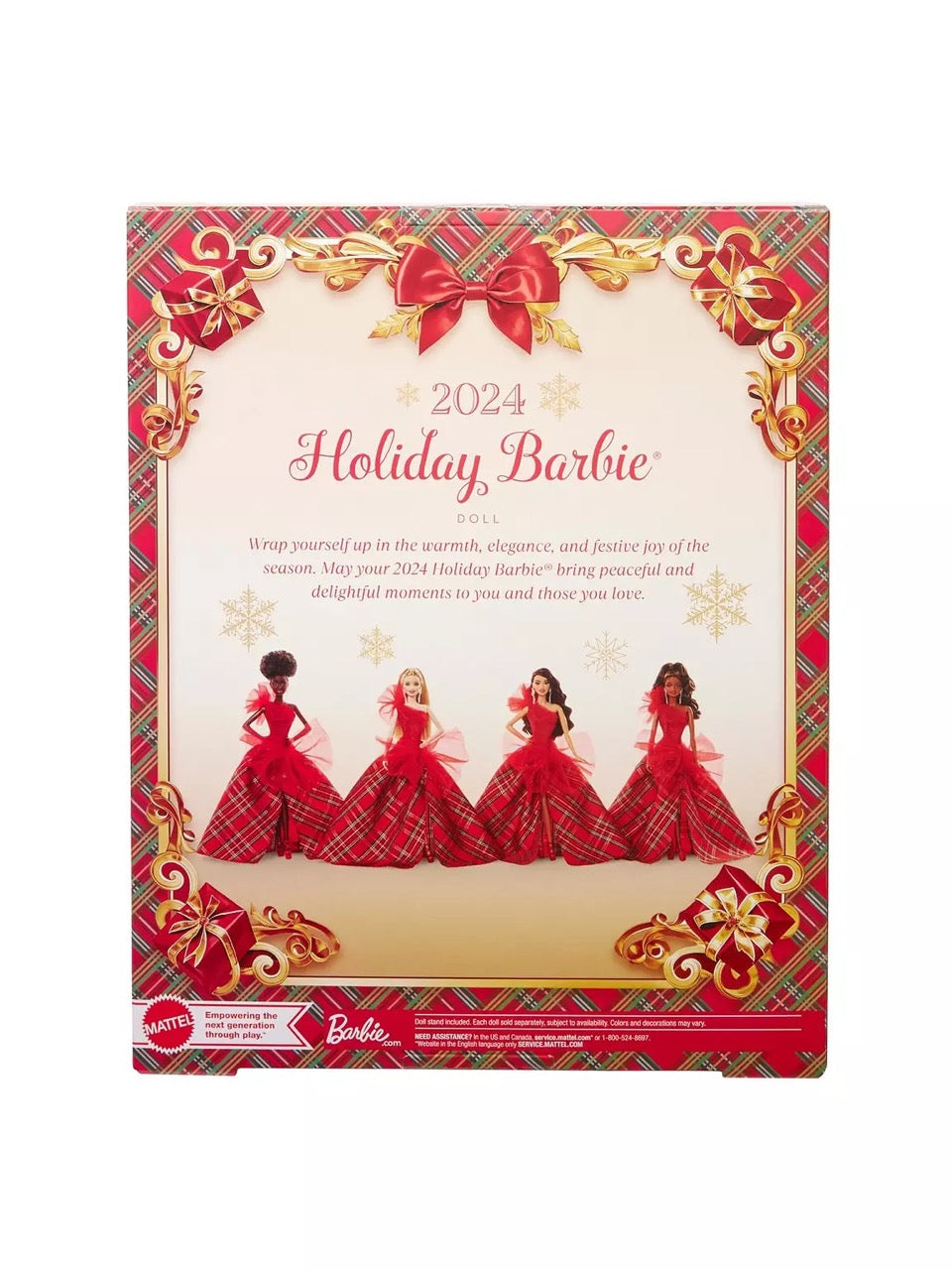 Prázdninová panenka Barbie 2024 vyzařuje teplo a lásku svátečního období se slavnostním oblečením a slavnostním vzhledem! Šaty nabízejí úžasné drama, protože kombinují hluboký červený živůtek na jedno rameno s plnou kostkovanou sukní ve stylu tutu. Velké tylové detaily jsou moderním pojetím klasického vzhledu.