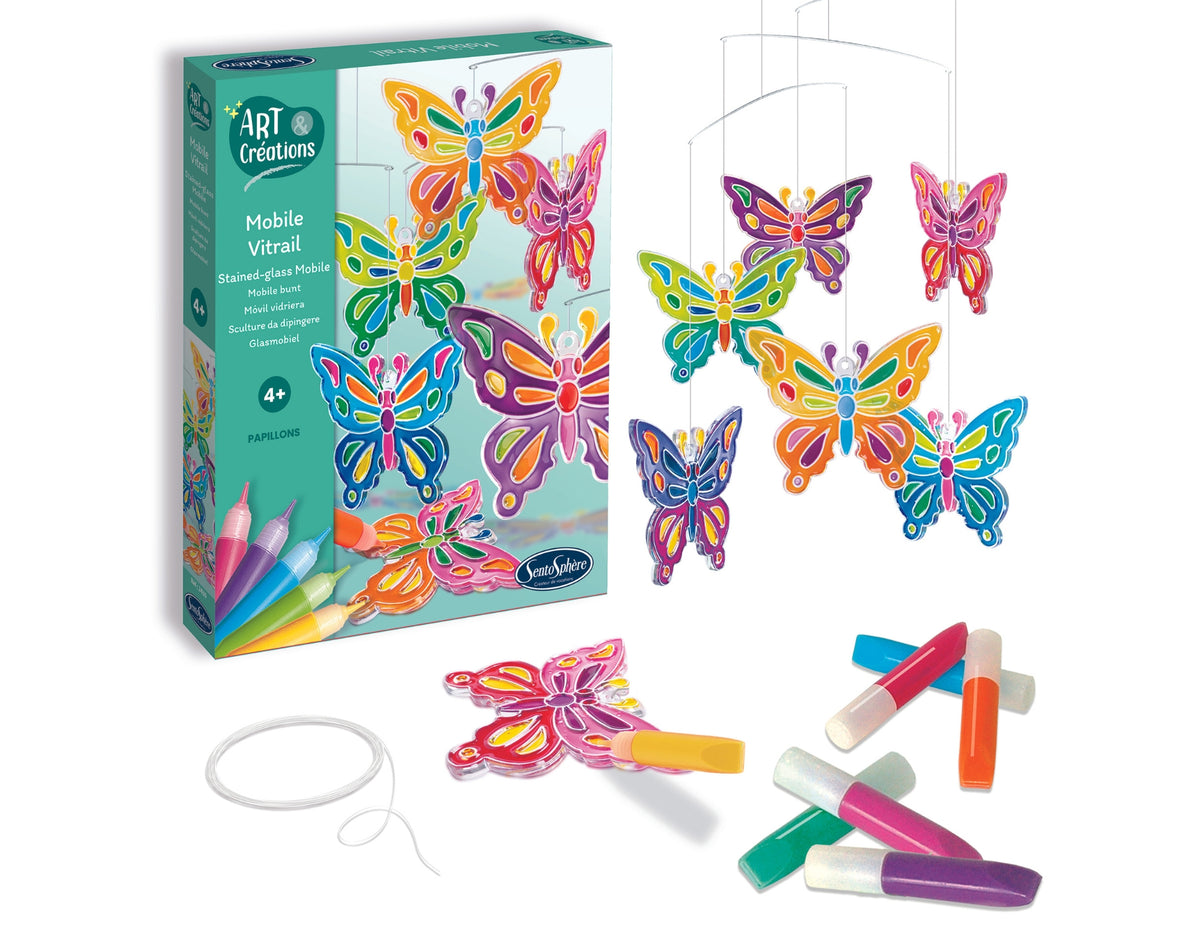 Díky této sadě si malé děti vytvoří vlastní vitráže vstřikováním zvolených barev do ozdobných rámečků. O několik hodin později budou prvky suché a křišťálově čisté, připravené k zavěšení jako mobilní, rotující a zobrazující tisíce odrazů.