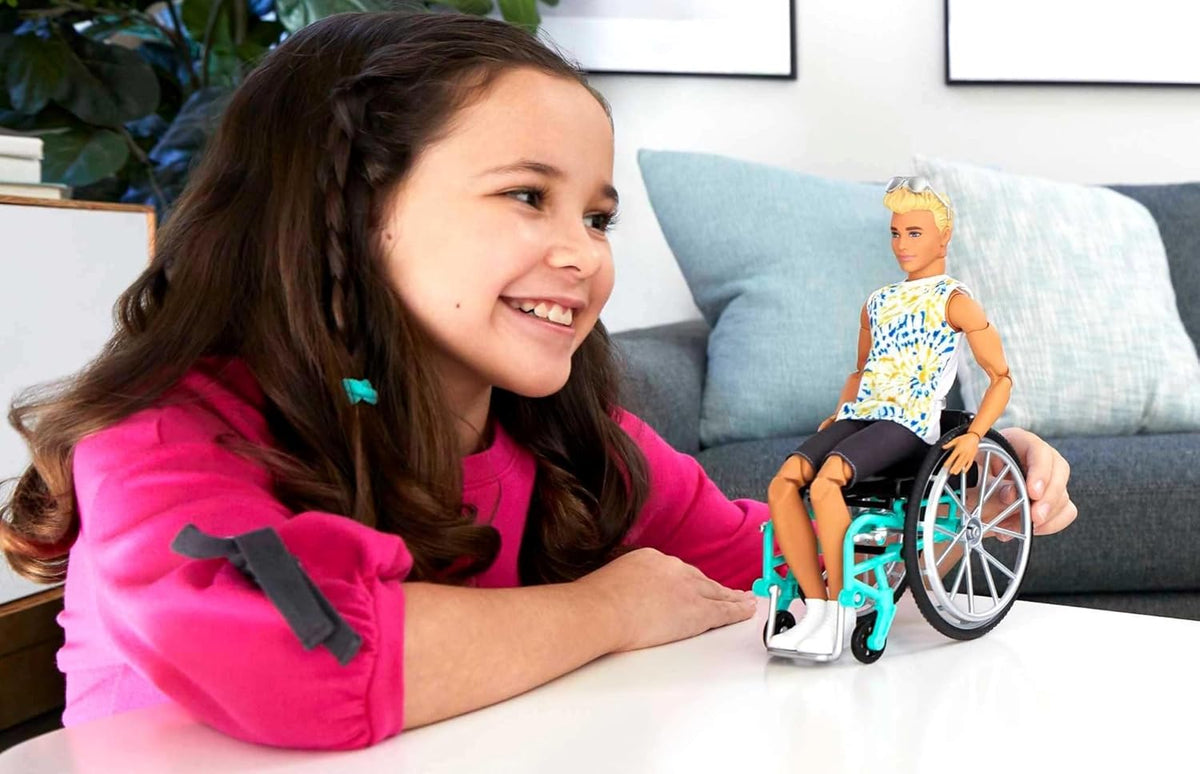 • Panenka Ken je dodávána s invalidním vozíkem, který má kolečka a funkční brzdu, a navíc rampu, která funguje s Barbie Dreamhouse (prodává se samostatně).