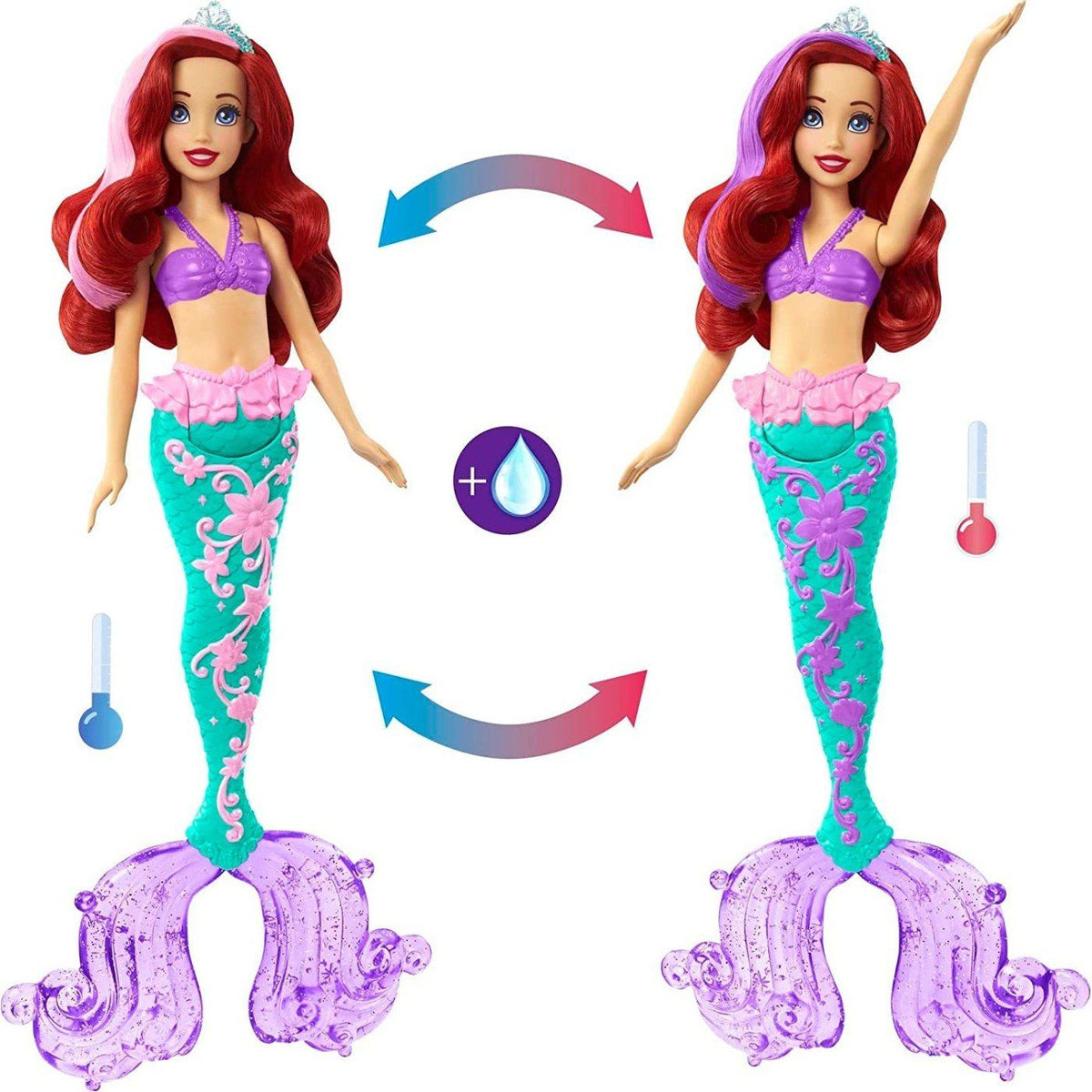 - Vlasy a ocas panenky Ariel, inspirované animovanou postavičkou z oblíbeného Disneyho filmu Malá mořská víla, mění barvu.