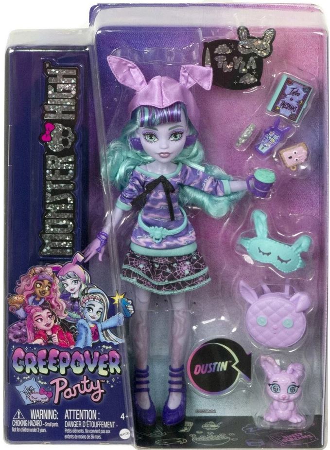 Panenky Monster High Creepover Party jsou dodávány s oblečením a tematickými doplňky na pyžamovou párty a také s domácími mazlíčky. Monster High představuje Twylu, přátelského ghúla, který vkládá „sladké“ do „sladkých snů“! Má schopnost manipulovat se stíny a vstupovat do snů svých přátel, což je ideální pro všechny druhy triků.