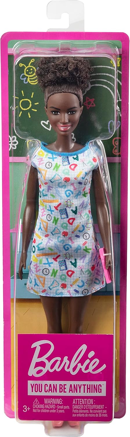Prozkoumejte svět zábavného učení s učitelkou Barbie! Tato sada obsahuje panenku učitelku Barbie v šatech s abecedou a růžovými botami a roztomilý účes do culíku. Je připravena vás učit!