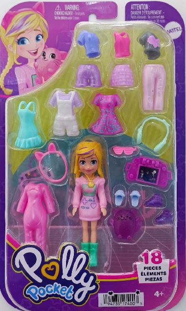 Nechte svůj styl zazářit s oblečením Polly Pocket™! Tato sada obsahuje krásný motiv herečky s 3palcovou panenkou, 18 kusy oblečení a 1 mazlíčka! S tolika možnostmi oblečení a doplňků je ideální pro děti, které se rády vyjadřují svým jedinečným módním stylem! Sbírejte je všechny a kombinujte oblečení, ať jste kdekoli. Každý módní balíček se prodává samostatně, v závislosti na dostupnosti.