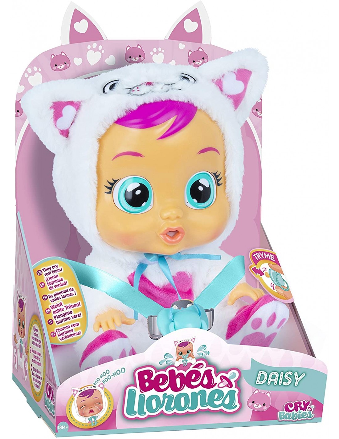 Každá panenka má připevněný dudlík a vyměnitelnou kojeneckou výbavičku se zvířecím vzorem.