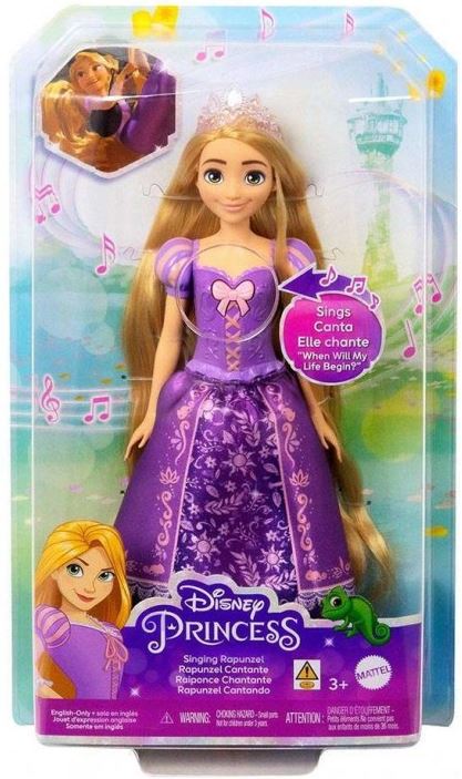 Tato živá a kreativní panenka Rapunzel, inspirovaná animovanou postavičkou z Disney's Tangled, je připravena na dobrodružství! Fanoušci budou nadšeni, když panenka Rapunzel zazpívá svou charakteristickou píseň v angličtině "When Will My Life Begin?" Ve svých klasických fialových šatech panenka Rapunzel zpívá, když stisknete tlačítko. Děti si mohou znovu vytvořit své oblíbené momenty z filmu nebo si vymýšlet vlastní příběhy Rapunzel. Panenka nemůže stát sama.